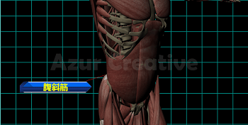 広背筋と脊柱起立筋、右の内腹斜筋が伸長され、その戻ってくる力が加わります。すなわち